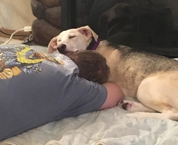 «Наш новый приемыш боится мужчин. Поэтому муж дал ей возможность самой решить, когда подойти. Она легла рядом и положила на него голову, как на подушку»