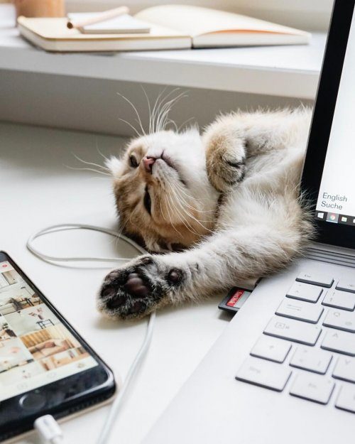 Антония Шмиц (Antonia Schmitz) — фотограф, редактор и дизайнер интерьеров, которая ведёт блог Craftifair и не может представить ни дня без своих трёх пушистиков: Пинки (Pinkie), Флоке (Flocke) и Магу. Магу — самая младшенькая — постоянно крутится в офисе Антонии, находя способы помочь ей по работе.