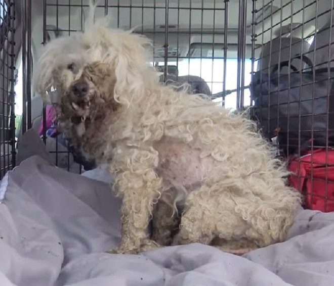 Она немедленно прибыла по адресу, указанному ей. То, что увидела, привело ее в ужас. Небольшая собачонка с шерстью спутанной и грязной, с хвостом, который облез, пыталась что-то съесть. При этом пес испытывал боль невероятную.