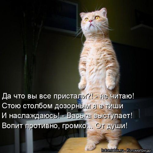 Самые лучшие и свежие котоматрицы, которые подарят позитив и поднимут настроение! Очаровательные котики и кошечки, о жизни которых Интернет-пользователи рассказывают в стихах и прозе!
