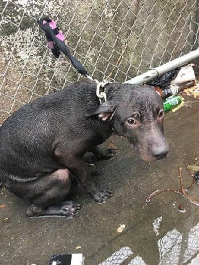 И тут он увидел пса. Тот дрожал у ограды из металла. Негде было даже укрыться. Глаза собаки молили о помощи. Вокруг туловища собралась довольно глубокая лужа.