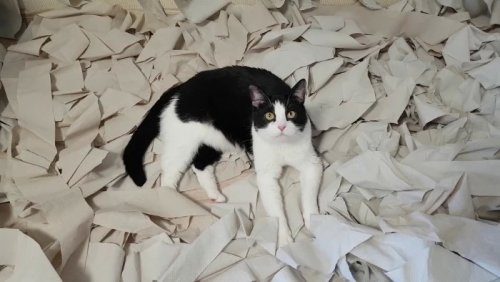Что произойдёт, если в комнату, полную туалетной бумаги, запустить кошку