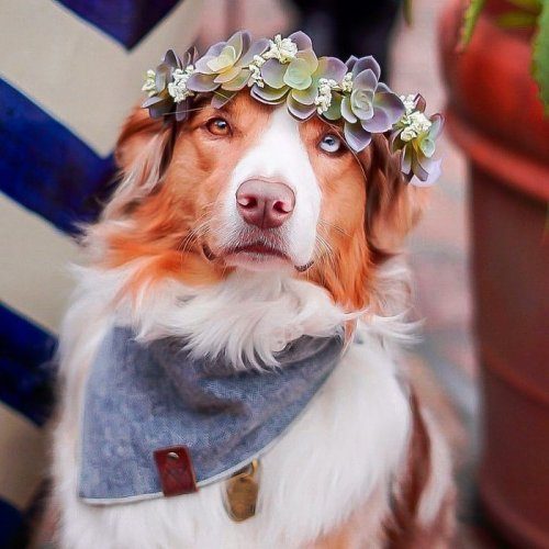 Первой обладательницей цветочной короны, которую преподаватель колледжа Ярели (Yarely) сделала для собаки, была её собственная австралийская овчарка по кличке Фрея (Freya). И сделано это было, когда та была ещё совсем щеночком — чтобы сделать несколько забавных фотографий для Instagram.