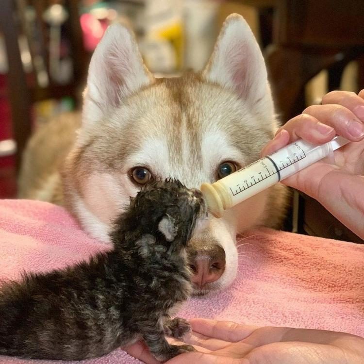 После того, как Лила подключилась к процессу воспитания котят, все пошло как по маслу. Волонтеры тихонько улыбаются — так и было задумано. Давным давно, по меркам собачьей жизни, Лила спасла, помогла выходить больную кошечку. И с тех пор они стараются ненавязчиво использовать её талант для благих целей. Собака стерилизована и своих щенков у нее никогда не будет, так пусть поможет другим малышам!
