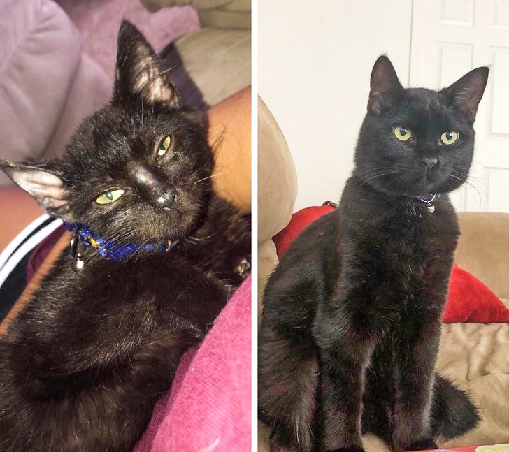 «Она попала к нам истощенной и обезвоженной. Теперь Ши — всеобщая любимица в нашей семье. Разница между этими снимками составляет 6 месяцев».