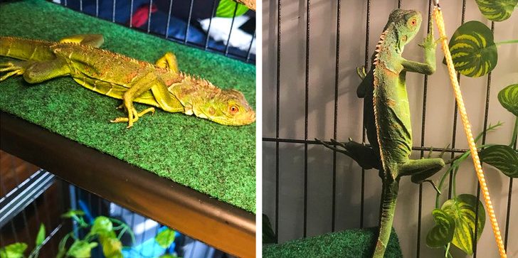 «За этой игуаной плохо ухаживали, прежде чем она попала ко мне. У животного даже не было сил стоять. Теперь Феликс — счастливый мальчик, который очень любит бегать».