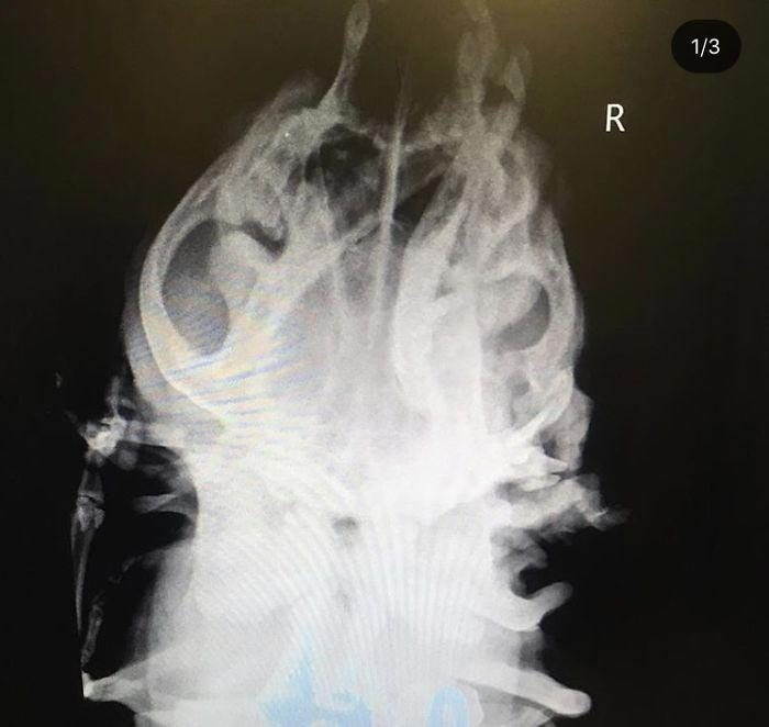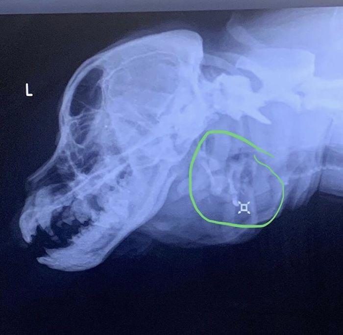 На первом рентгеновском снимке видно, как сложен череп собаки