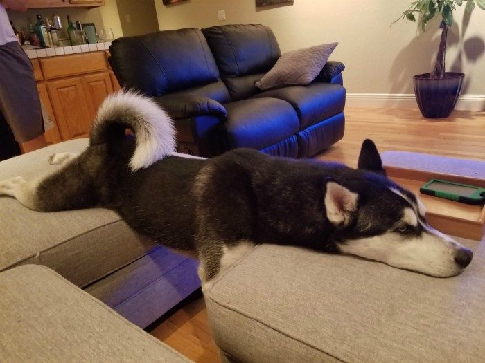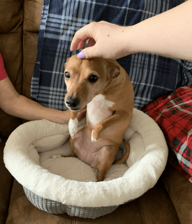 “Наш пес всегда принимает такую позу во время почесушек”.