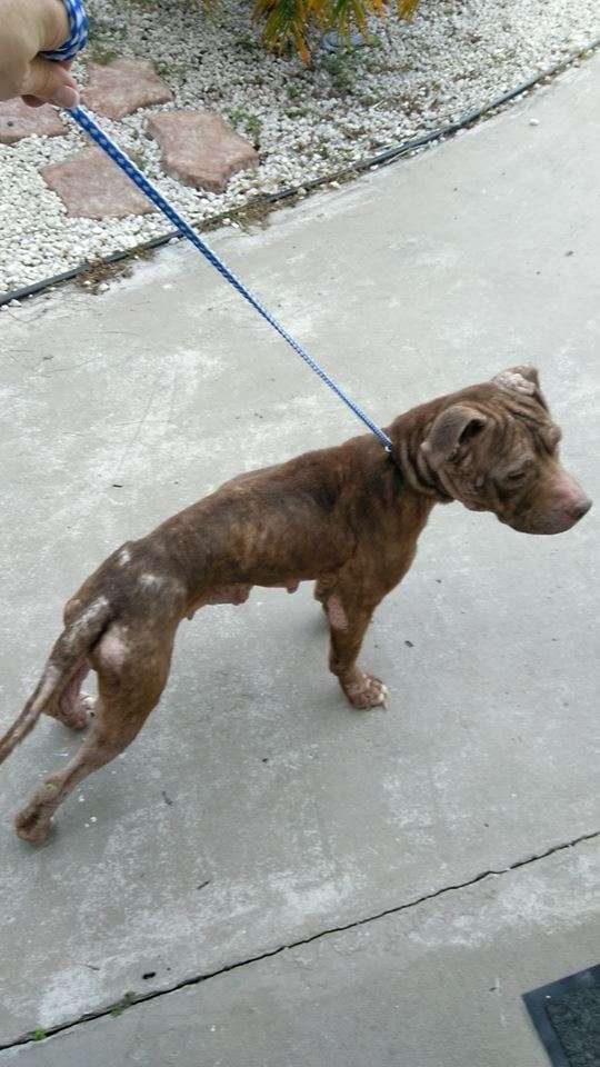Кроме того, питбуль много раз рожала поэтому выглядела очень истощенной. Однако ей было всего три года.