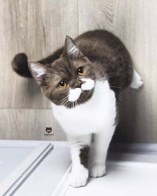 Знакомьтесь, это Гринго (Gringo)! У этого годовалого британского короткошерстного котика такие импозантные усы, что почти слышен его акцент! Всё, что ему сейчас нужно — это цилиндр, круглые очки и трубка, чтобы вести какое-нибудь собственное детективное телешоу в стиле викторианской эпохи.
