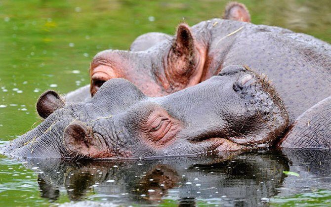Жаркий день у бегемотов в зоопарке Бедфордшира