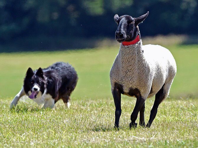 Не роняя достоинство. Пастушья собака и овца в Уэльсе. (Фото Rebecca Naden | Reuters):