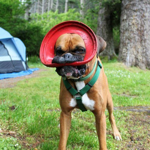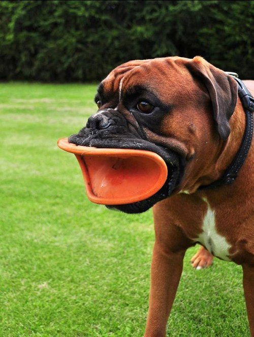 Смешные собаки с дисками в зубах