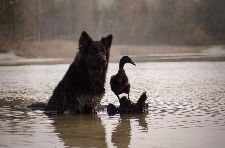 Свою новую серию фотографий девушка решила посвятить дружбе между её собакой и её уткой