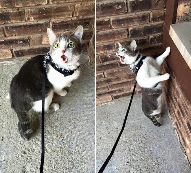 Благодаря их естественной придури, иногда кошки начинают просто до жути боятся привычных вещей, например, улицы. Это настолько смешно, что аж до слез, и 20 домашних кошек, которым очень не нравится гулять на улице, ждут вас далее.