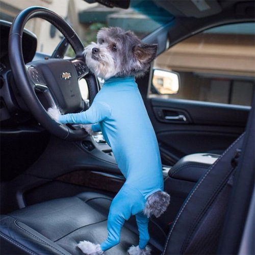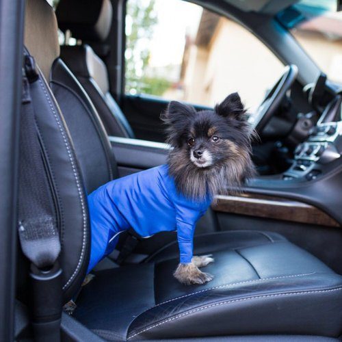 Компания Shed Defender (США) производит такие боди и утверждает, что они защищают от выпадения шерсти, уменьшают чувство беспокойства и заменяют медицинский конус.