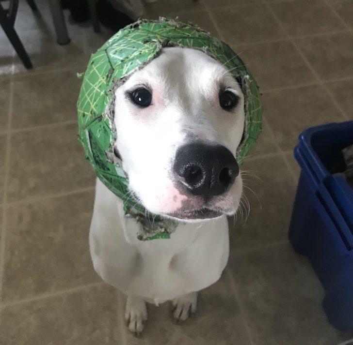 «Моя собака прогрызла дыру в мяче и стала носить его в качестве головного убора»