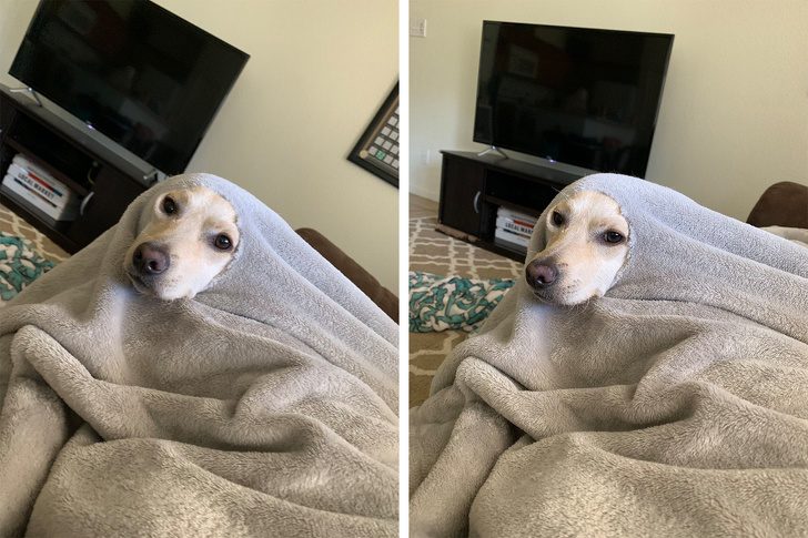 «Моя собака прогрызла дырку в одеяле и сделала вот так»