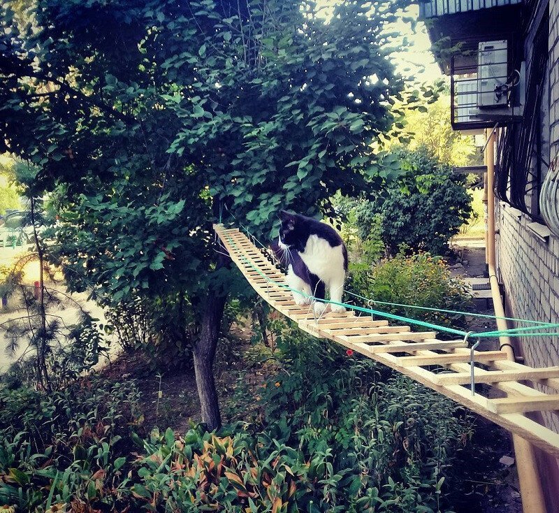 Местный житель собственными руками построил гулящей кошке шикарные апартаменты — домик с лестницей, зоной отдыха, подсветкой, и даже вентиляцией. И все это практически в воздухе — между окном квартиры и близлежащим деревом. Вот что значит, когда у человека руки растут из нужного места. Кошачьи хоромы волгоградцы оценили, позавидовав котейке.