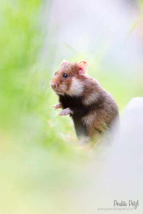 В течение нескольких лет она фотографирует хомяков, часами ожидая, пока они начнут вылезать из своих норок ближе к вечеру. Она полюбила этих любопытных маленьких существо и в своих снимках старается показать их привлекательность, а также забавные особенности.