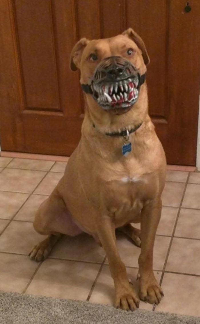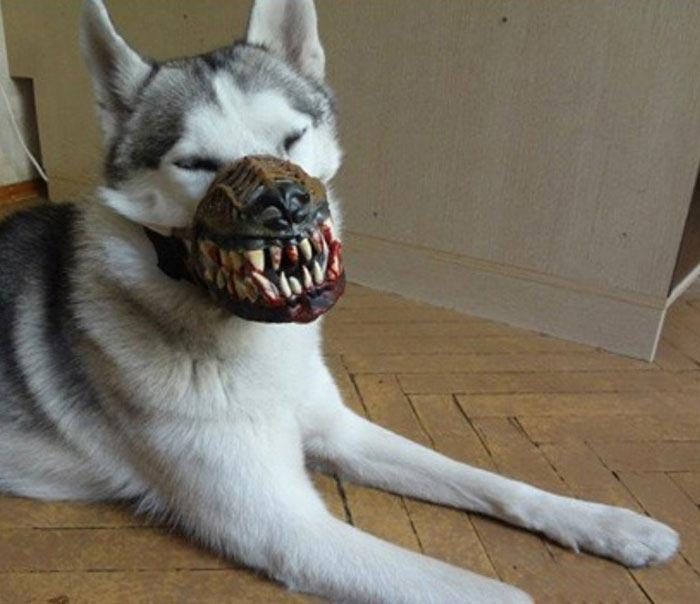 Тем не менее, для некоторых владельцев собак привлекательность своих питомцев не самое главное, и они хотят, чтобы их собачка отпугивала всех соседей в округе. Они достигли этого одним из самых инновационных способов, превратив своих пушистых друзей в злобных оборотней с помощью простой жуткого намордника. Если вы любите фильмы про оборотней и считаете, что готовиться к Хэллоуину никогда не рано, тогда вы можете подумать о том, чтобы у вашей собаки была морда, похожая на озлобленную пасть бешеного оборотня.