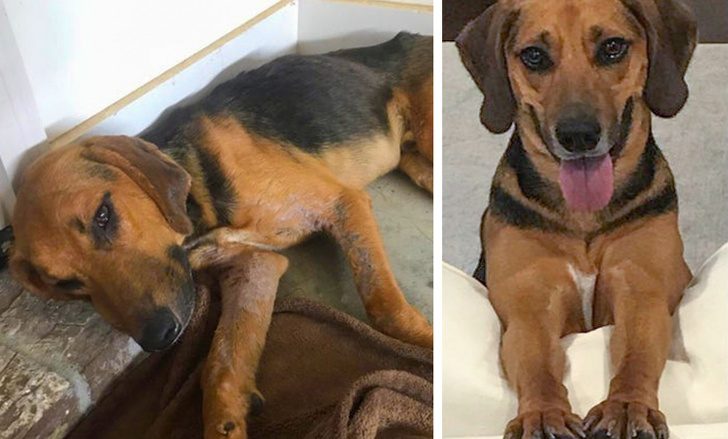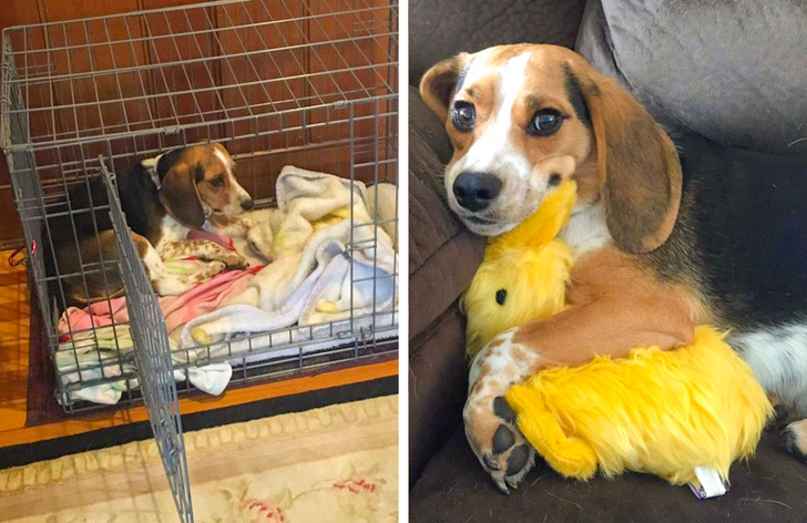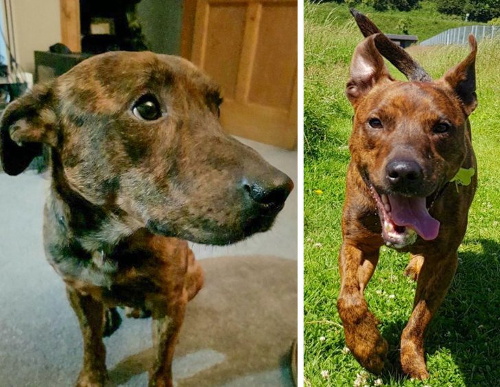 16. «Слева — Лу, когда мы только привезли его домой, справа — он же спустя 6 месяцев. Взять собаку из приюта стало одним из наших лучших решений в жизни!»