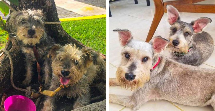 21. «Слева — фото Датча из приюта, справа — фото, сделанное спустя год после того, как мы забрали его к себе»