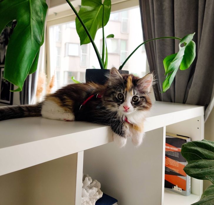«Прошлой ночью я разбирала пробку на дороге, когда в свете фонаря увидела два блестящих глаза. От неожиданности я мяукнула и мне мяукнули в ответ. А пока я смотрела, чтобы машины нормально разъехались, он залез по штанине и умостился у меня на плече»