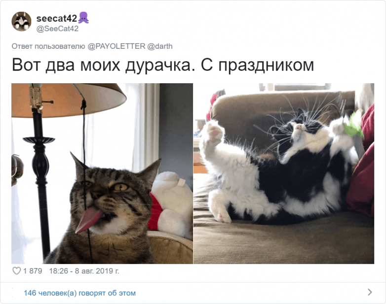 Как же можно отпраздновать Международный день кошек, если не фотографиями своих любимцев? Вот и пользователи Твиттера решили так же и устроили целый обмен из снимков своих хвостатых и усатых питомцев.