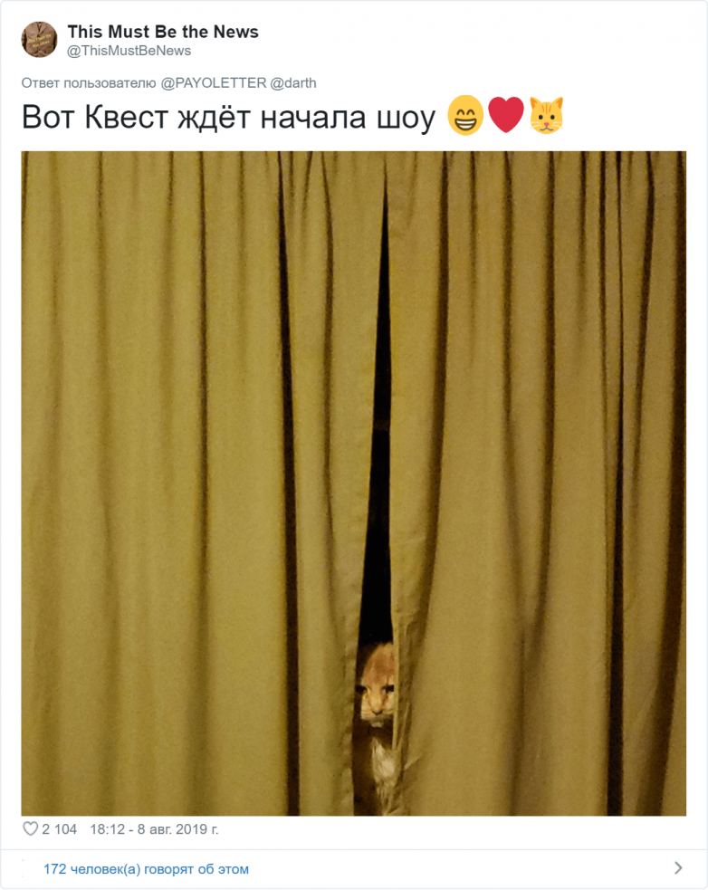 Правила были просты — выложить снимок своего кота или кошки, когда он или она ведёт себя странновато для своего вида. Ждёт душа, например, или сидит в кресле прямо как хозяин. И таких милых странностей или странных милостей нашлась целая гора!