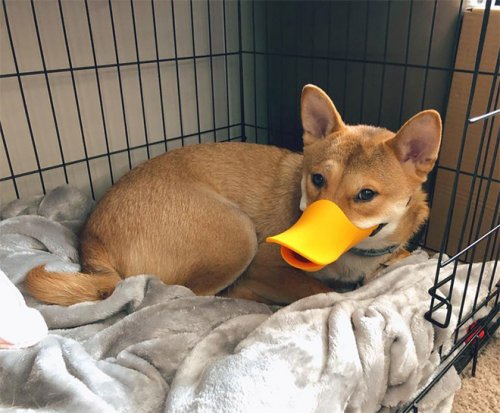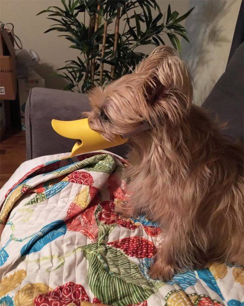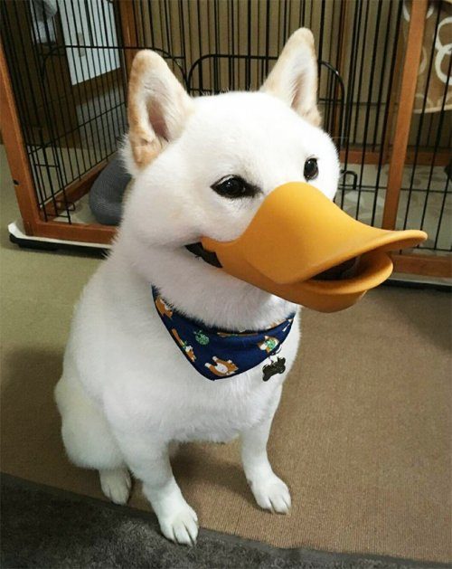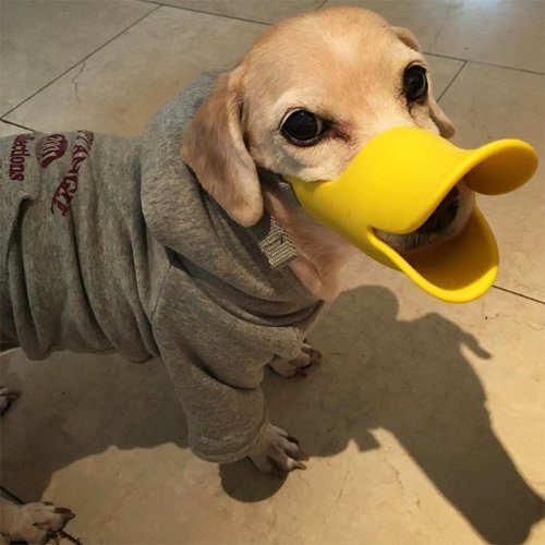Наверное, собаки с этим клювом крякают вместо лая и им стыдно :)