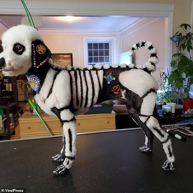 На носу День мертвых — большой и важный мексиканский праздник, а там еще и Хеллоуин не за горами. Вот она и расстаралась украсить своего любимого пуделя Сластену под… скелет. Вышло на удивление достоверно и это перепугало массу людей.