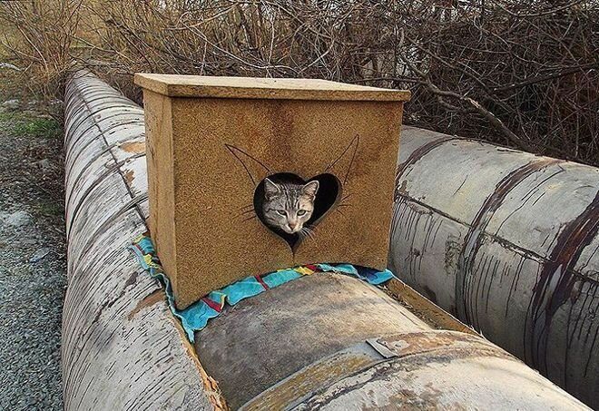 Устанавливаются в защищённом от ветров месте, лучше под навесом. Несколько раз в неделю привозили сухой корм. Последствия: зиму кошки переживали, с наступлением тепла начинали уходить сами.А вот ещё один «рецепт» спасения