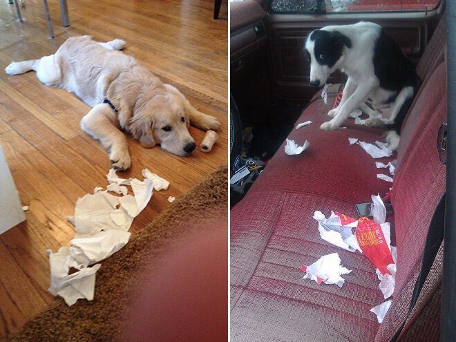 В отличие от кошек, собаки способны испытывать стыд. По крайней мере, так кажется по выражению их мордочек. Прокрутите вниз, чтобы увидеть четвероногих хулиганов, пойманных с поличным.