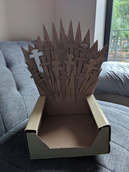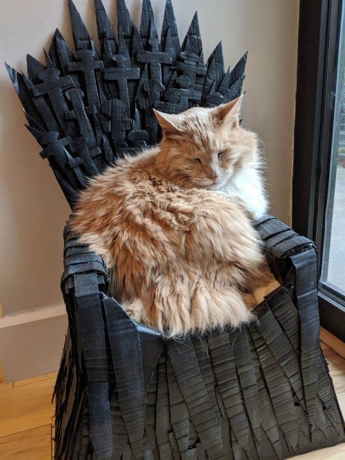 Элли Гибсон (Elly Gibson) из Олбани, штат Нью-Йорк, США, сделала для своего 17-летнего царственного кота Артура породы мейнкун картонный Железный трон, вдохновлённый «Игрой престолов».