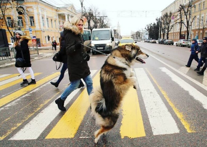 А началось всё с того, что проезжавший по проспекту Революции, что находится в славном городе Воронеже, водитель заметил на пешеходном переходе девушку с прыгающей на задних лапах собакой, отснял на видео и выложил в интернет.