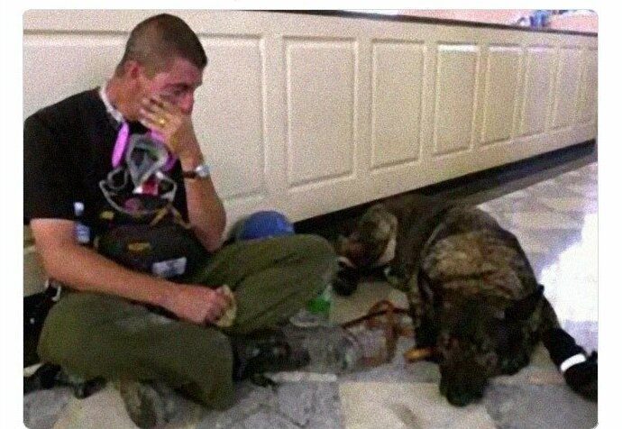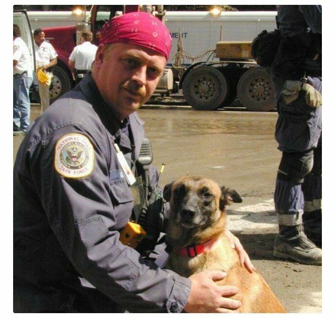 Таска, еще одна собака-спасатель из Огайо со своим проводником Гарри Флинном.