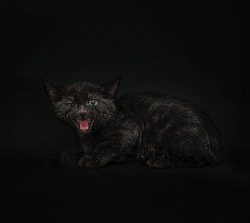 «Для этой серии я фотографировала чёрных кошек на чёрном фоне, чтобы подчеркнуть их красоту и продемонстрировать их индивидуальность, – говорит Кейси Элиз. – Среди чёрных кошек — самые низкие показатели усыновления и самые высокие показатели эвтаназии: отчасти потому, что обычно их плохо фотографируют. Я хотела показать, что при желании всё-таки можно сделать красивые фотографии чёрных кошек. И надеюсь, что мои снимки вдохновят людей забирать из приютов и усыновлять чёрных кошек, а также посильно помогать местным приютам».