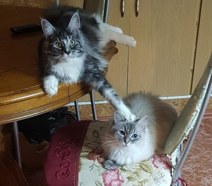 Усатые-полосатые воспринимают это как должное и не нарушают правила игры. Хотя могли бы, ведь это они в доме хозяева!