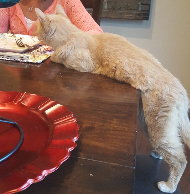 Коту так удобно. И не спрашивай больше. Лучше отвернись, пока я твою тарелку проинспектирую.