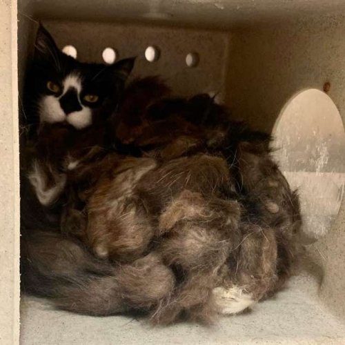 Может быть ее забыли там первые домовладельцы, когда только заселились? Судя по запущенной шерсти животного, она просидела в подвале не один год. Ветеринары были в шоке от ее состояния, а чтобы сделать ей стрижку, даже пришлось прибегнуть к анастезии. Сейчас кошка уже пришла в себя и ждет, когда ей найдут новый дом. Ветеринар, у которого она временно живет, говорит, что кошечка очень милая, но все равно не доверяет людям и все время где-то прячется.