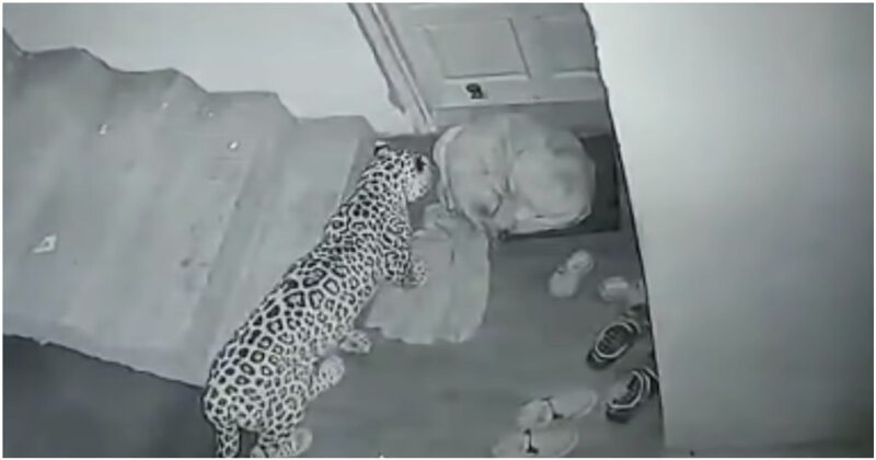 В индийском городе Шимла установленная на входе в жилой дом камера наблюдения запечатлела нападение леопарда на спящую возле двери собаку. На опубликованных кадрах видно, как леопард несколько минут терпеливо подкрадывался к домашнему животному, а затем атаковал его.