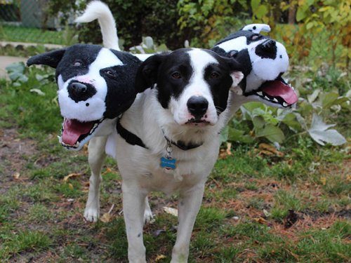 Если у вас есть собака и вы хотите сделать ей отличный костюм на Хэллоуин, то взгляните на эту коллекцию фотографий с «трёхглавыми» Церберами, которые если не напугают, то, как минимум, обратят на себя внимание прохожим.
