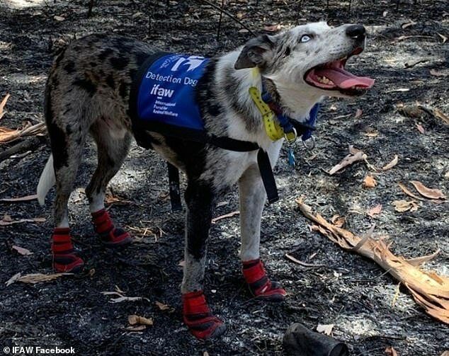 Вооруженный специальными защитными носочками, отважный пес «патрулирует» горящие леса в Новом Южном Уэльсе и Квинсленде в поисках пострадавших коал. На этой неделе он работает в Куройбе, графство Нуса. Он — единственная собака в мире, которая может вынюхивать коал.