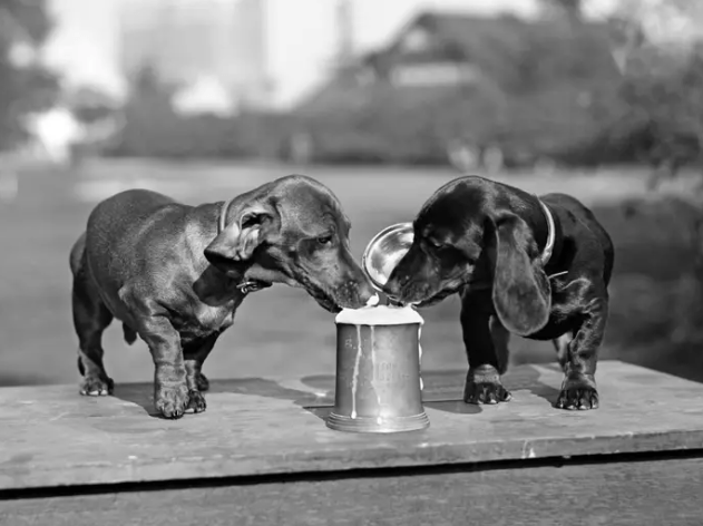Таксы лакомятся свежим пивом