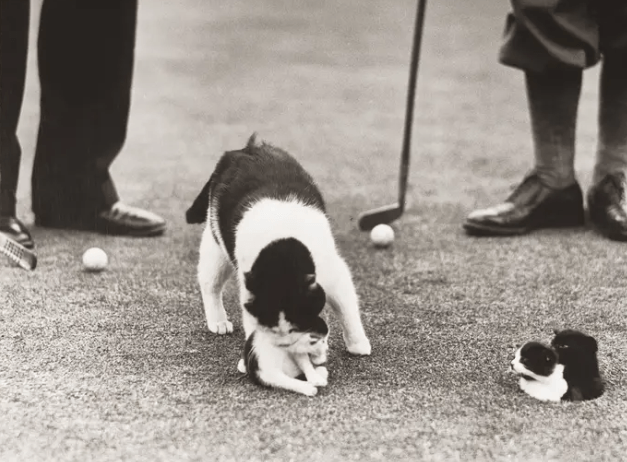 Кошка оккупировала лунку для гольфа, чтобы спрятать там котят