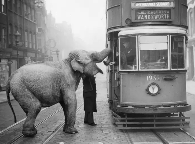 Слониха выпросила яблоко у пассажира трамвая