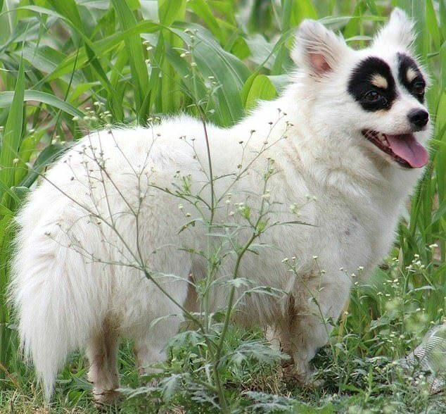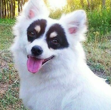 Природа наградила эту белую собаку чёрной маской, скрывающей её лицо