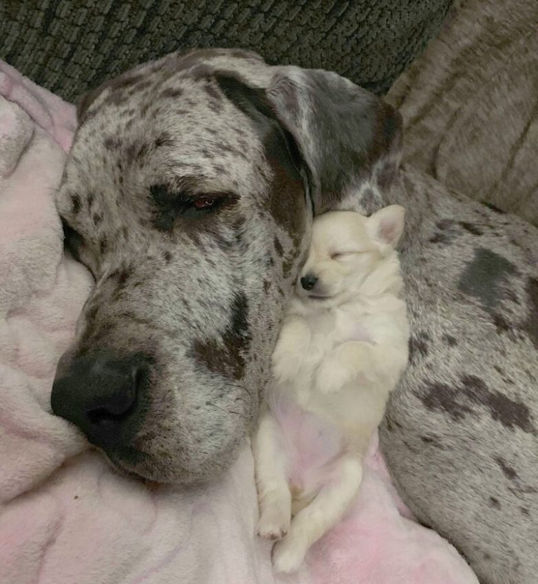 Необычная парочка с очень большой разницей в размерах стала не разлей вода, и их различия в характере и объёмах не стали преградой. Дог по имени Шелби и чихуахуа Бьянка вместе почти с самого рождения малышки, и стараются не расставаться. И их совместные снимки — одна сплошная иллюстрация к слову «подружки».