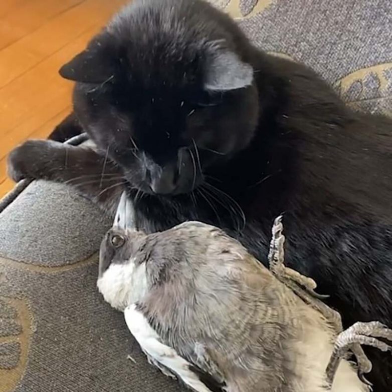 У парня дома уже был питомец, кот по прозвищу Маугли (Mowgli), но невзирая на то, что кошки любят охотиться на птиц, эти двое в итоге стали лучшими друзьями.